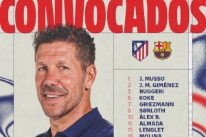 马竞主场迎战巴萨大名单:阿尔瓦雷斯领衔锋线,多位青训小将在列