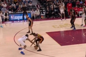 GIF-哈登连续炒菜运球 被亚历山大-沃克直接面断 并且反击成功